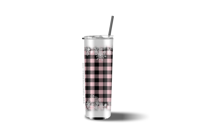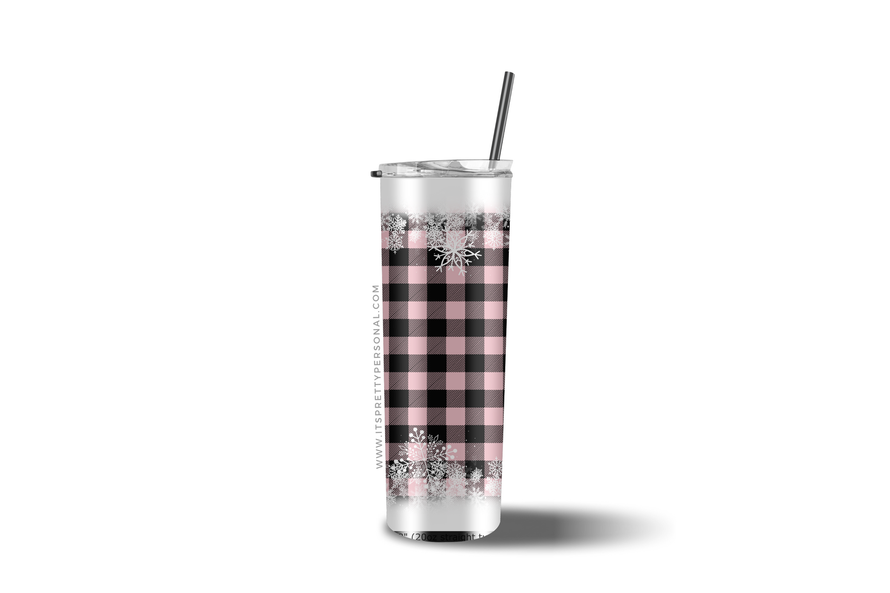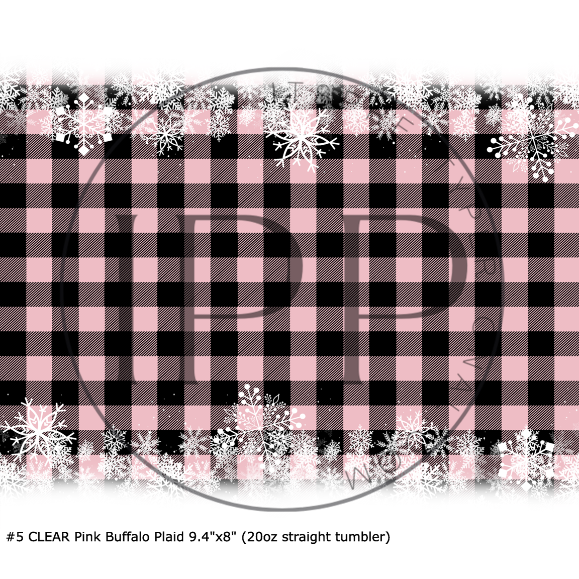 #5 CLEAR 20oz Pink Buffalo Plaid Snow- 9.4" x 8" Pattern Vinyl Wrap (IPP EXCLUSIVE!)