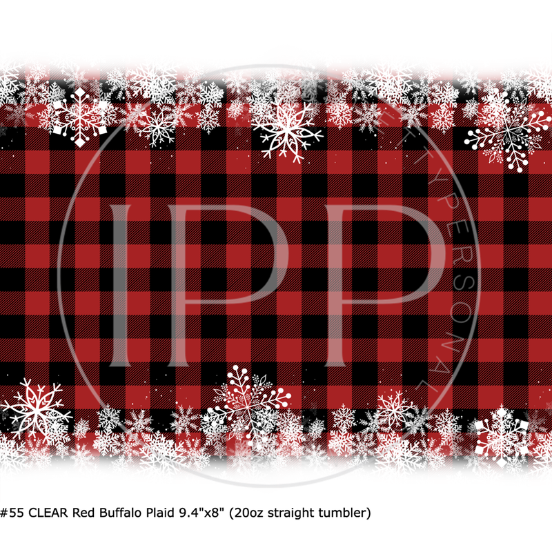 #55 CLEAR - 20oz Red Buffalo Plaid Snow- 9.4" x 8" Pattern Vinyl Wrap (IPP EXCLUSIVE!)
