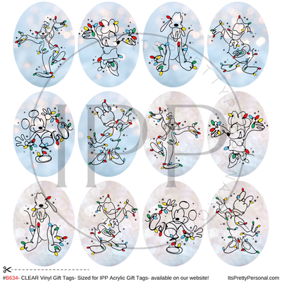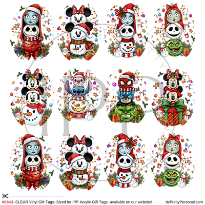 #B643-CLEAR Vinyl Gift Tag Helper Sheet-Classic Christmas Characters-12x12 CLEAR Pattern Vinyl