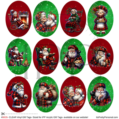 #B635-CLEAR Vinyl Gift Tag Helper Sheet-Classic Mr Mrs Santa Claus-12x12 CLEAR Pattern Vinyl