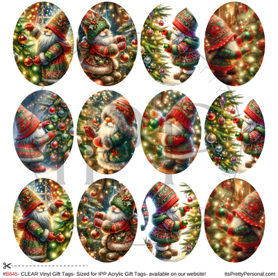 #B645-CLEAR Vinyl Gift Tag Helper Sheet-Christmas Gnome-12x12 CLEAR Pattern Vinyl