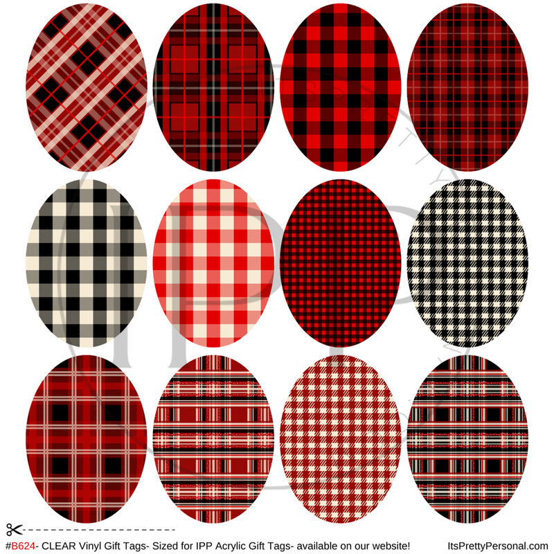#B624-CLEAR Vinyl Gift Tag Helper Sheet-Christmas Plaid-12x12 CLEAR Pattern Vinyl