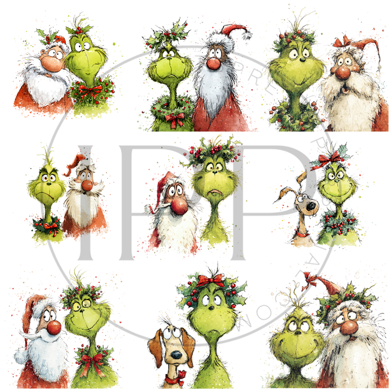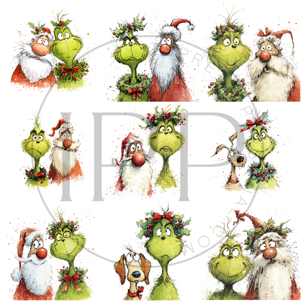 #B646-CLEAR Small Scale Ornament Grid Helper-Mean Green Santa Christmas -12x12 CLEAR Pattern Vinyl