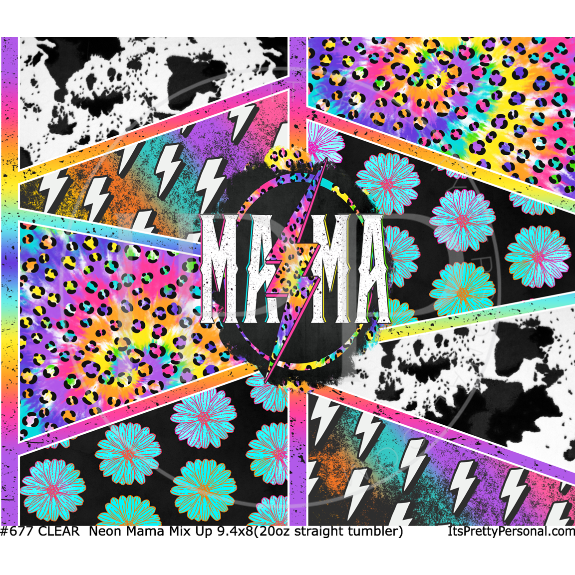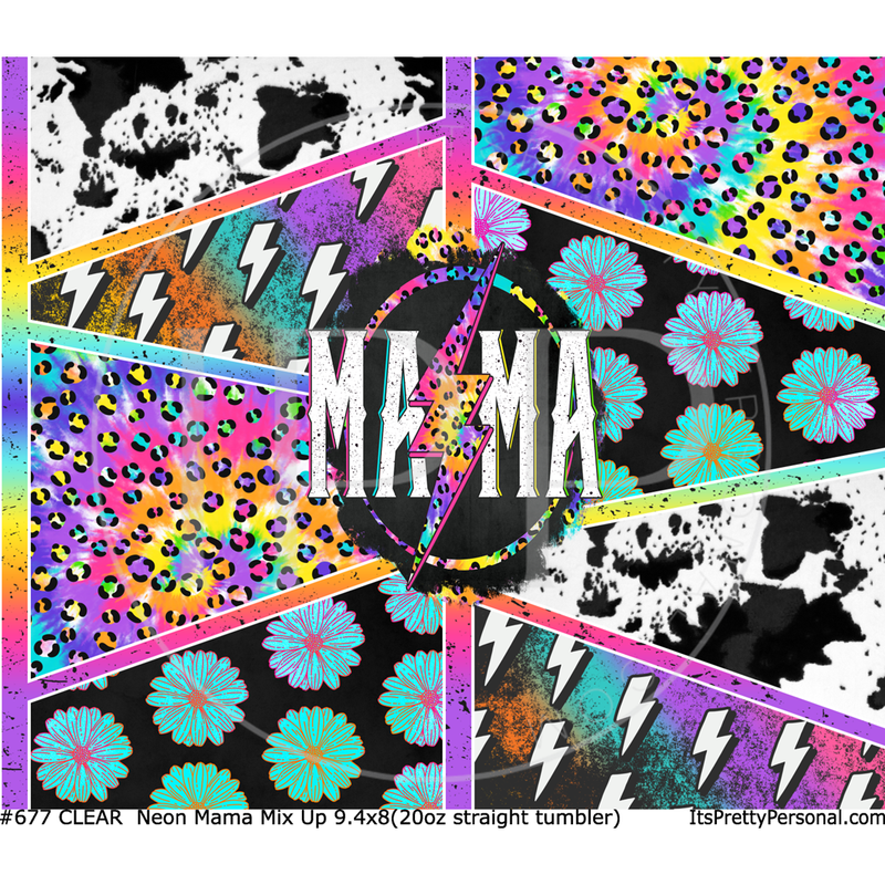 #677 CLEAR- 20oz -Neon Mama Mix Up 9.4" x 8" Pattern Vinyl Wrap
