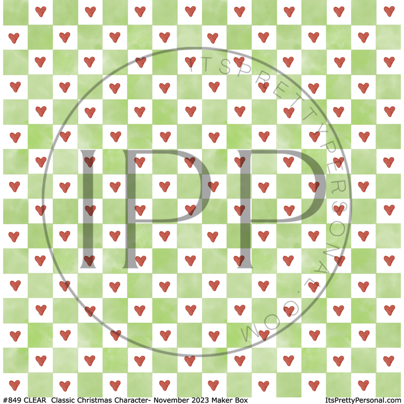 #849 CLEAR -Green Christmas Red Hearts - November Maker 2023 12x12 Pattern Vinyl