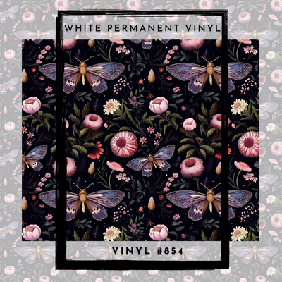 #858 CLEAR- 20oz -Mystical Garden Moth 9.4" x 8" Pattern Vinyl Wrap