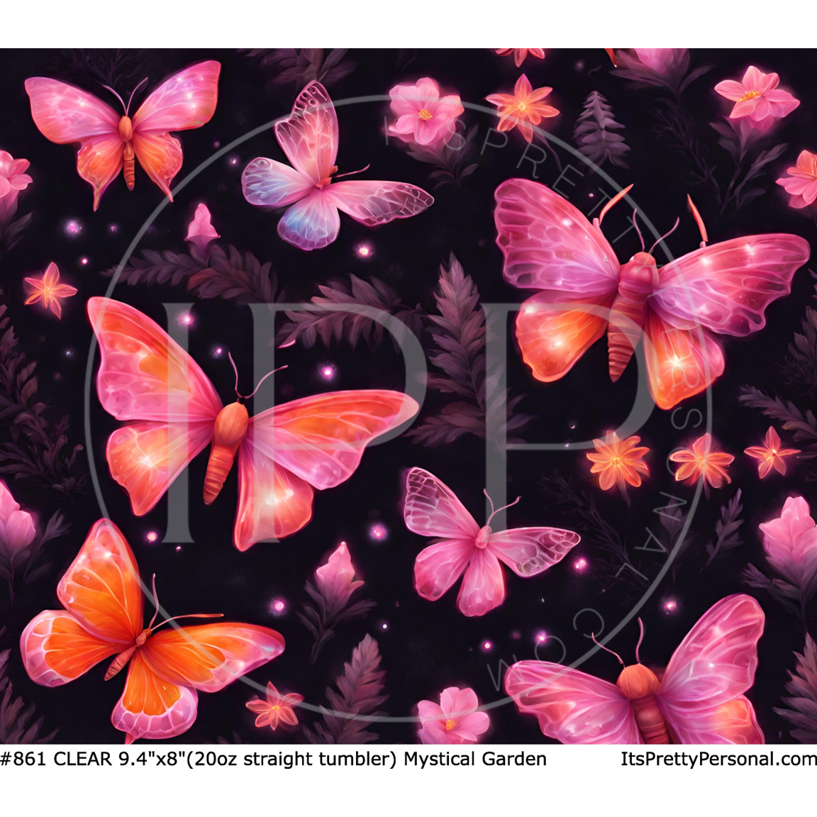 #861 CLEAR- 20oz -Mystical Garden Butterflies 9.4" x 8" Pattern Vinyl Wrap