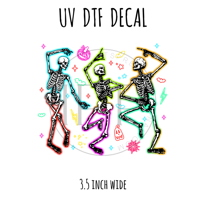 #606 Neon Halloween Spooky Skeletons - 3.5 inch wide UV DTF decal