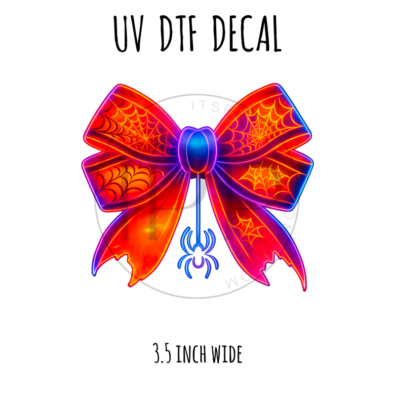 #609 Neon Halloween Spider Bow- 3.5 inch wide UV DTF decal
