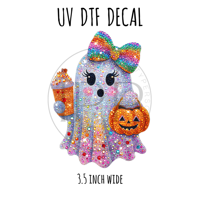 #611 Rainbow Bling Bow Ghost- 3.5 inch wide UV DTF decal