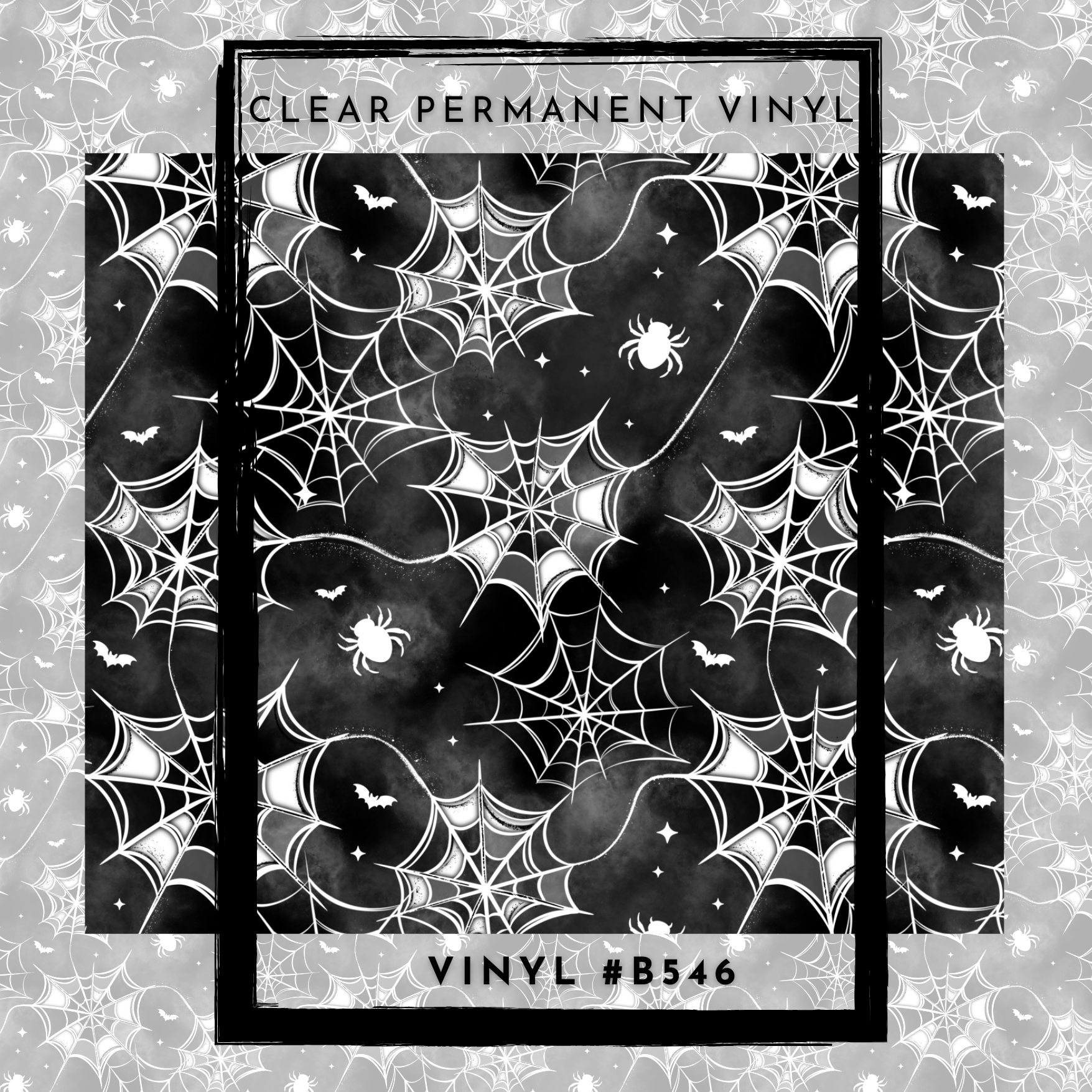 #B546- CLEAR Spooky Black White Spider Web- 12x12 Pattern Vinyl