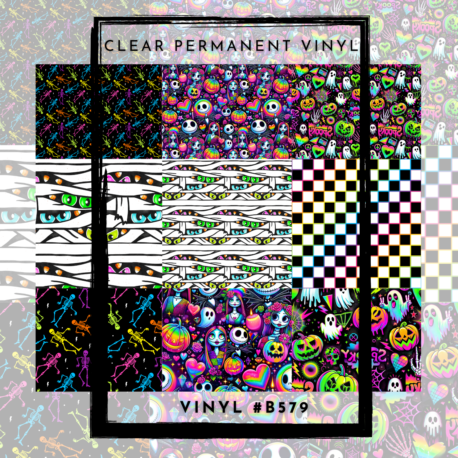 #B579-CLEAR Small Scale Ornament Grid Helper-Neon Monster Mummy-12x12 CLEAR Pattern Vinyl