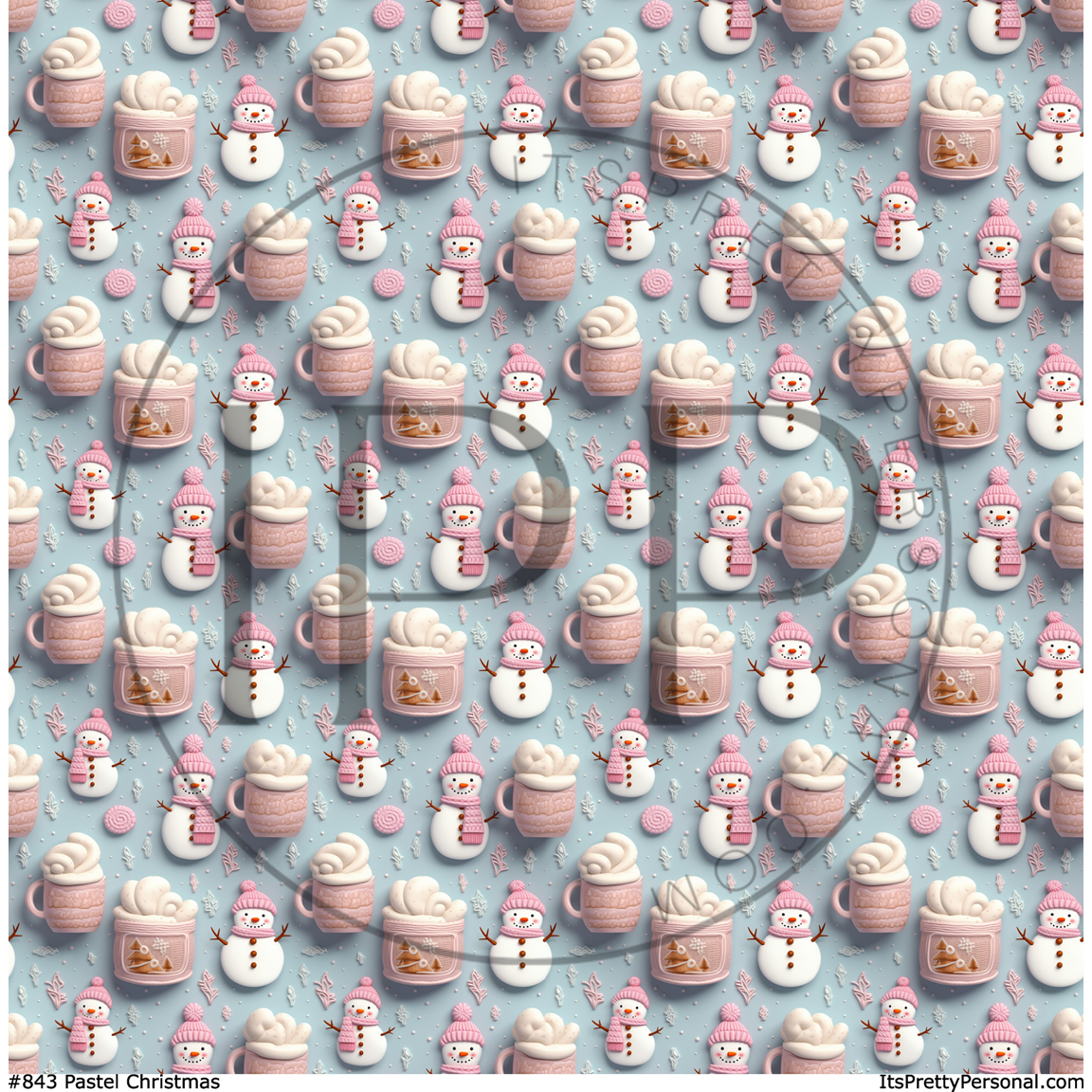 #843- Pastel Winter Christmas Snowman- 12x12 Pattern Vinyl