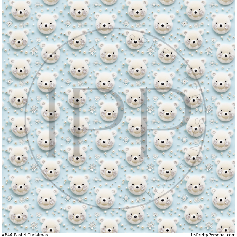 #844- Pastel Winter Christmas Bear- 12x12 Pattern Vinyl