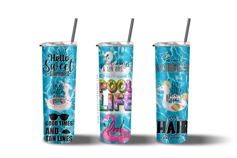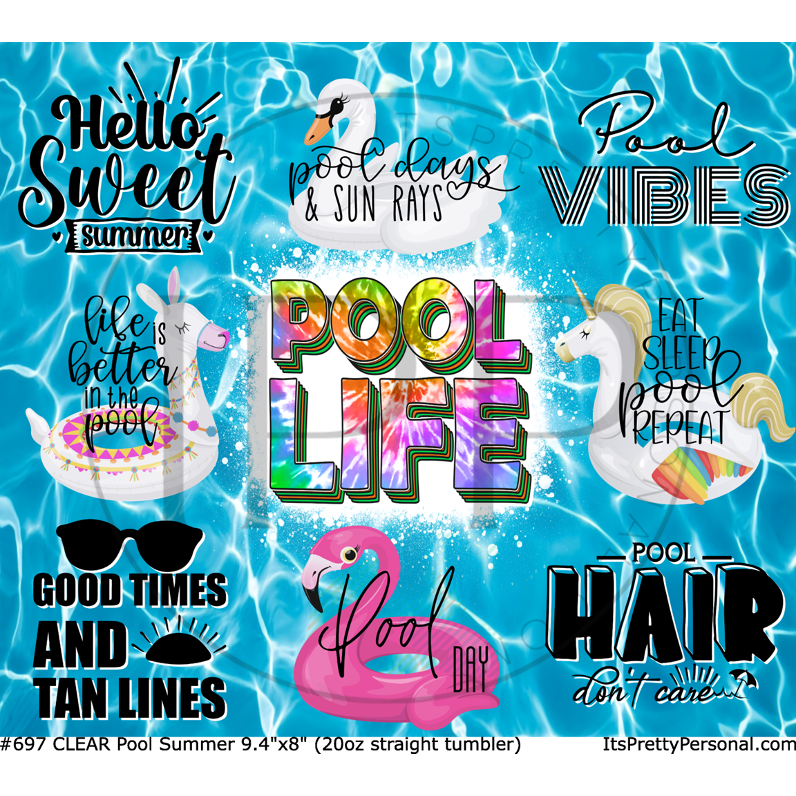 #697 CLEAR- 20oz - Pool Life 9.4" x 8" Pattern Vinyl Wrap