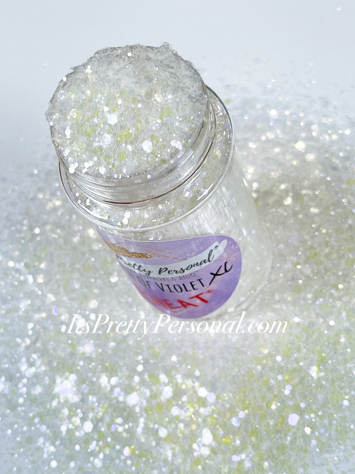 "Touch of Violet”- A TRUE Opal White color Glitter with purple flashes. Works best on Pink, white, blue and purple light to medium color bases.