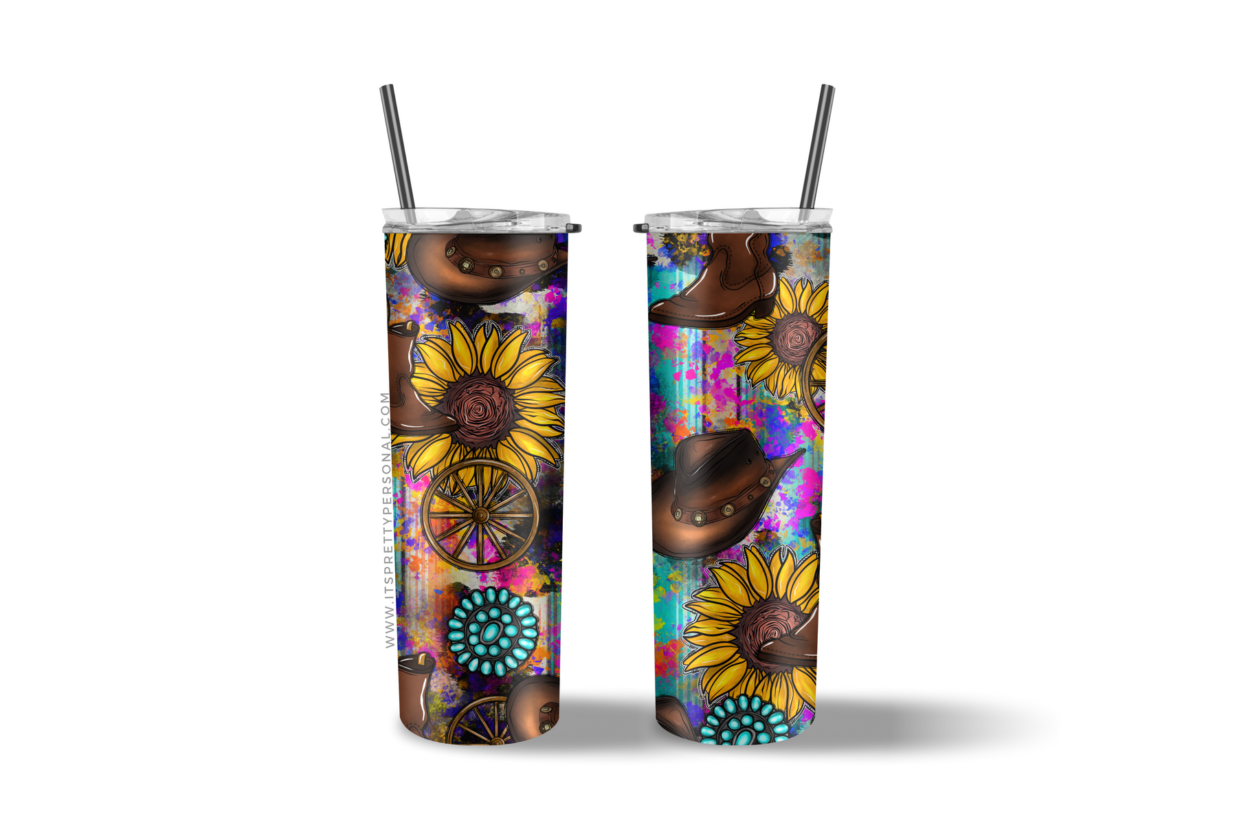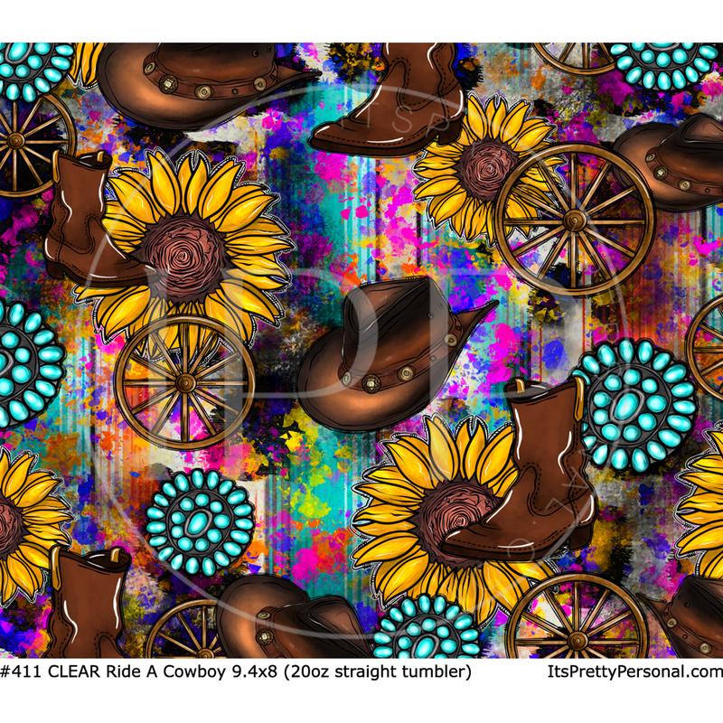 #411 CLEAR- 20oz - Ride A Cowboy 9.4" x 8" Pattern Vinyl Wrap