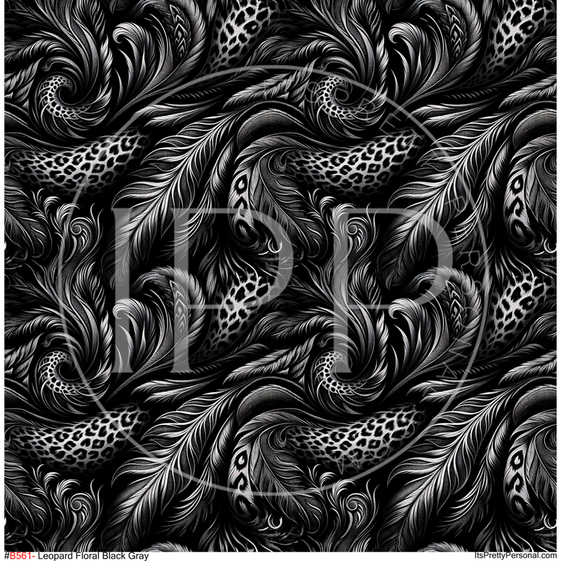 #B561- Leopard Floral Black Gray- 12x12 Pattern Vinyl