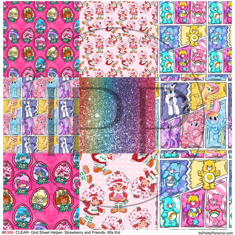 #B386- CLEAR Small Scale Ornament Grid Helper-Strawberry and Friends 90s Kid- 12x12 CLEAR Pattern Vinyl