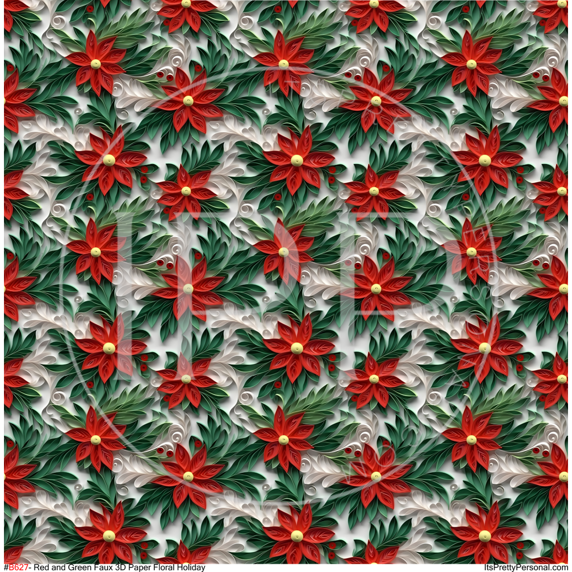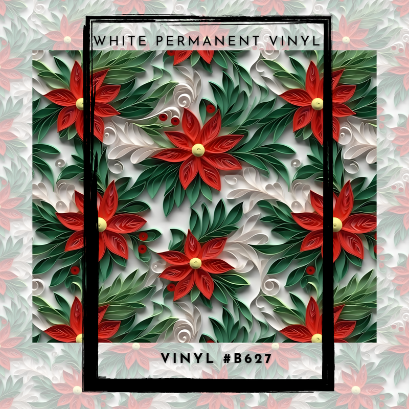 #B627 Red and Green Faux 3D Paper Floral Holiday- 12x12 Pattern Vinyl