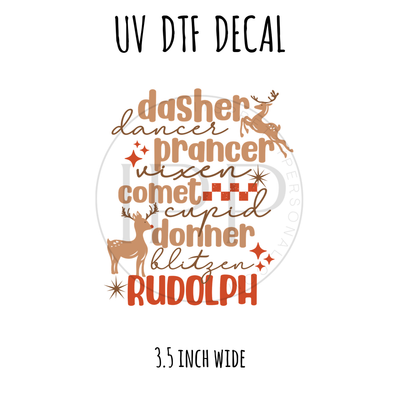 #641 Christmas Reindeer Names List - 3.5 inch wide UV DTF decal