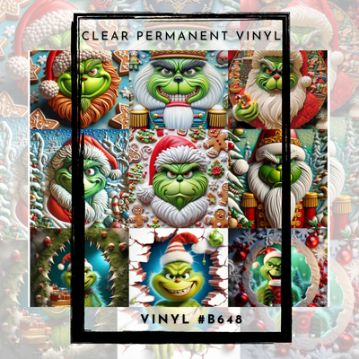 #B649-CLEAR Small Scale Ornament Grid Helper-Mean Green Santa-12x12 CLEAR Pattern Vinyl