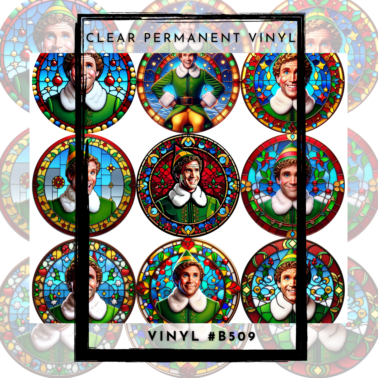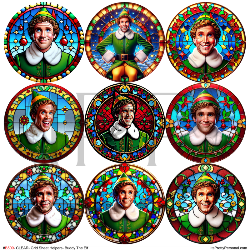 #B509-CLEAR Small Scale Ornament Grid Helper-Buddy The Elf- 12x12 CLEAR Pattern Vinyl