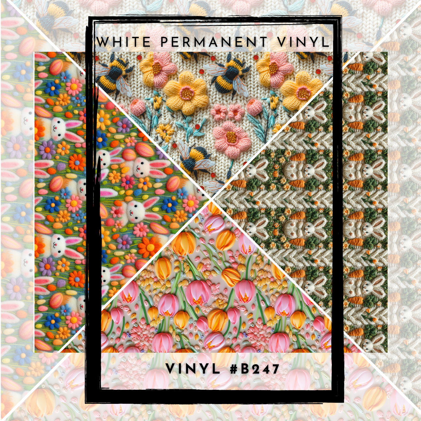 #B247-V-Split Helper-Bunny Bee Spring Texture- 12x12 Pattern Vinyl