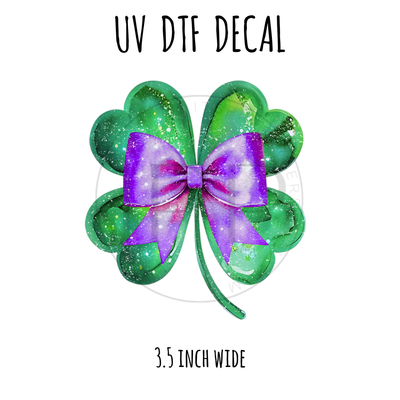 #553-Purple Bow Clover - 3.5 inch wide UV DTF decal