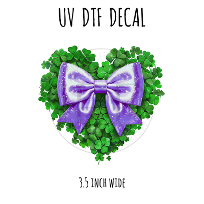 #554-Purple Bow Clover Heart - 3.5 inch wide UV DTF decal