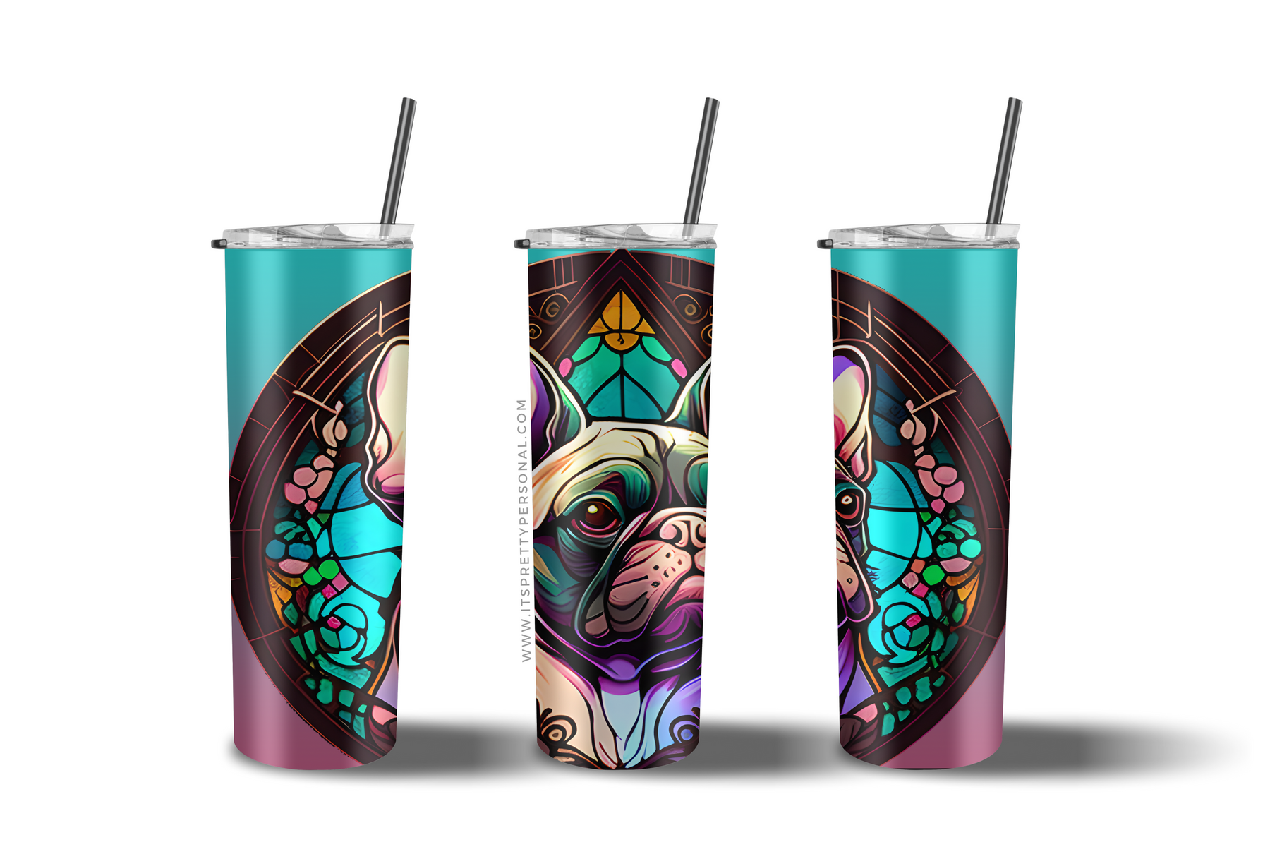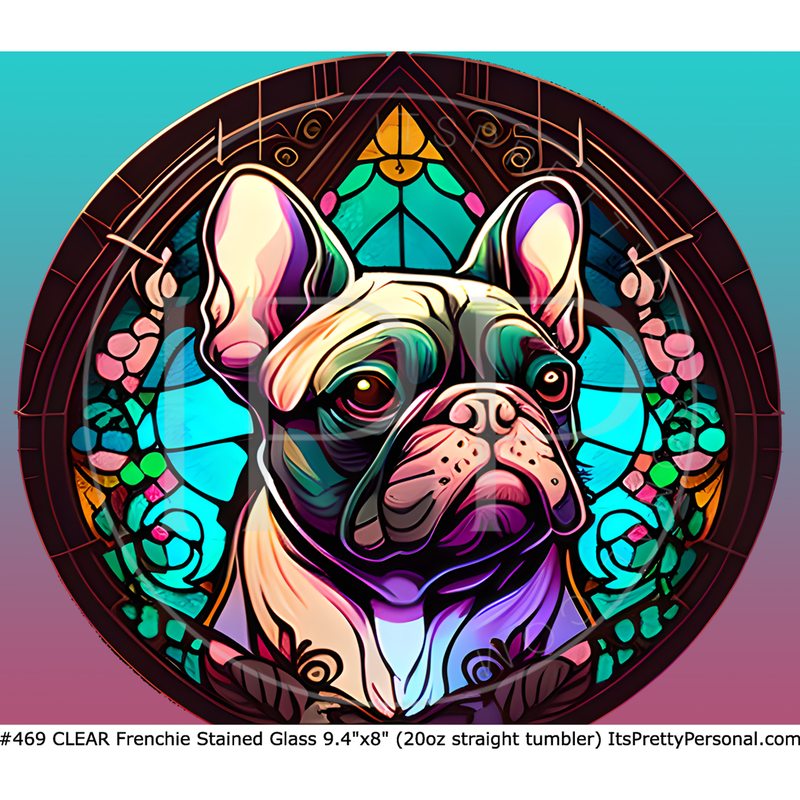 #469 CLEAR- 20oz - Stained Glass Frenchie 9.4" x 8" Pattern Vinyl Wrap