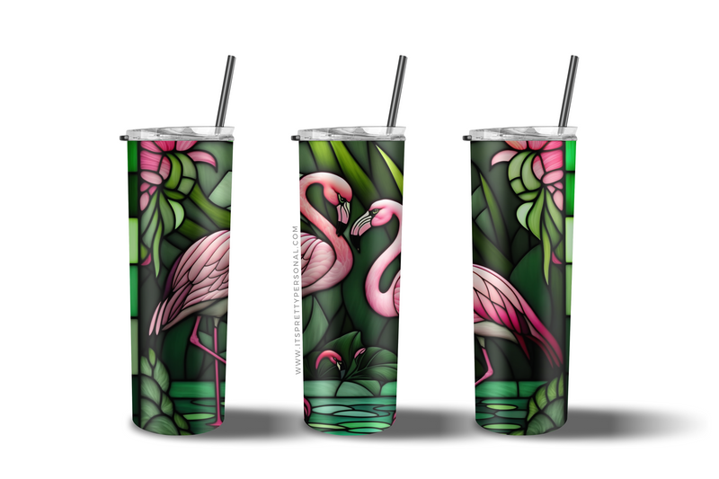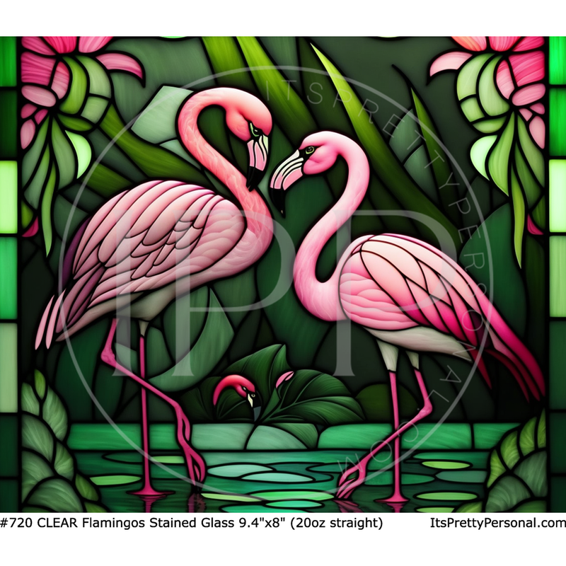 #720 CLEAR- 20oz -Flamingos Stained Glass 9.4" x 8" Pattern Vinyl Wrap