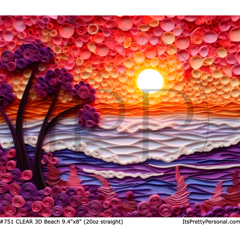 #751 CLEAR- 20oz -3D Beach 9.4" x 8" Pattern Vinyl Wrap