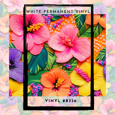 #B336-Faux Embroidered Tropical Flowers- Krissy's Secret Drop- 12x12 Pattern Vinyl