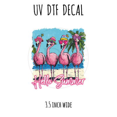 #193-Hello Summer Flamingos- 3.5 inch wide UV DTF decal