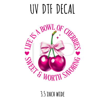 #124-Life Is Bowl Of Cherries- 3.5 inch wide UV DTF decal