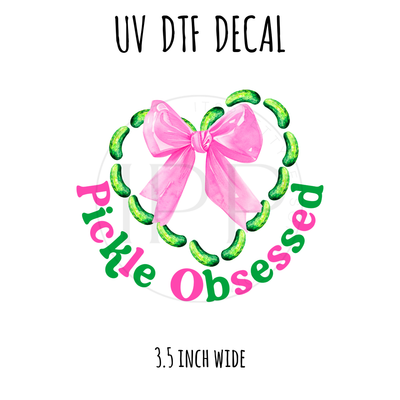 #128-Pickle Obsessed heart bow- 3.5 inch wide UV DTF decal