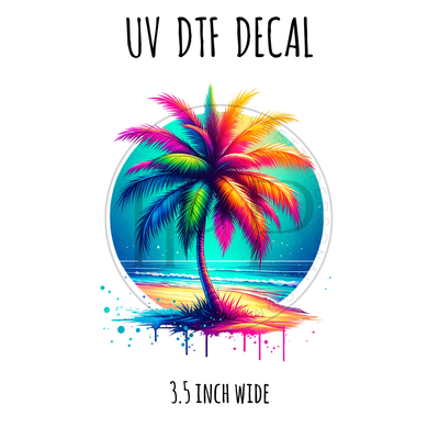 #180-Neon Dripping Palm Tree - 3.5 inch wide UV DTF decal