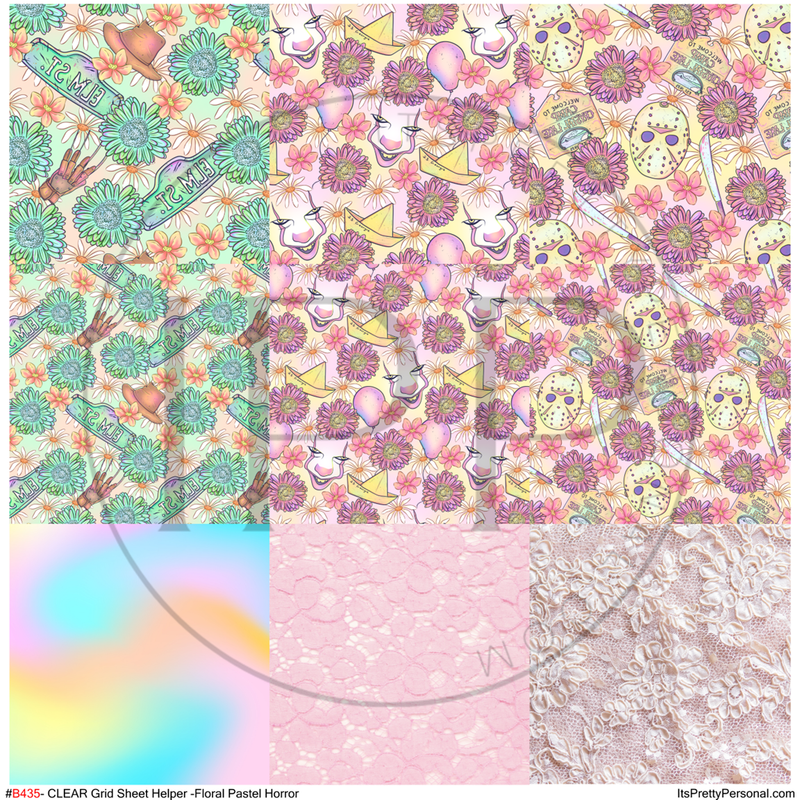 #B435-CLEAR Small Scale Ornament Grid Helper-Pastel Horror- 12x12 CLEAR Pattern Vinyl