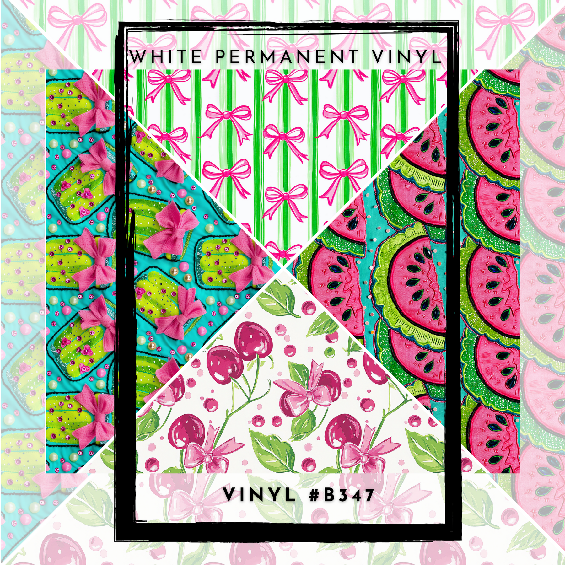 #B347-V-Split Helper-Pink + Green Watermelon Cherries Pickles Bows- 12x12 Pattern Vinyl