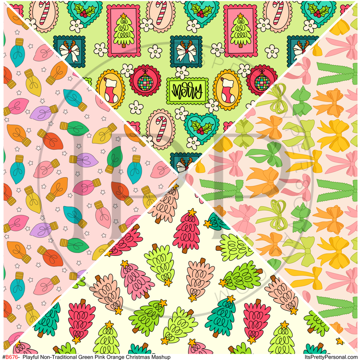#B676-V-Split Helper-Playful Non-Traditional Green Pink Orange Christmas- 12x12 Pattern Vinyl