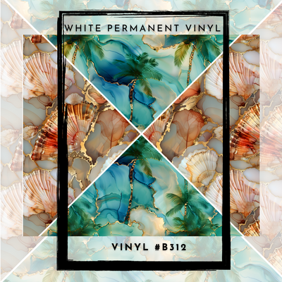 #B312-V-Split Helper-Alcohol Ink Nautical Palm Trees + Seashells- 12x12 Pattern Vinyl
