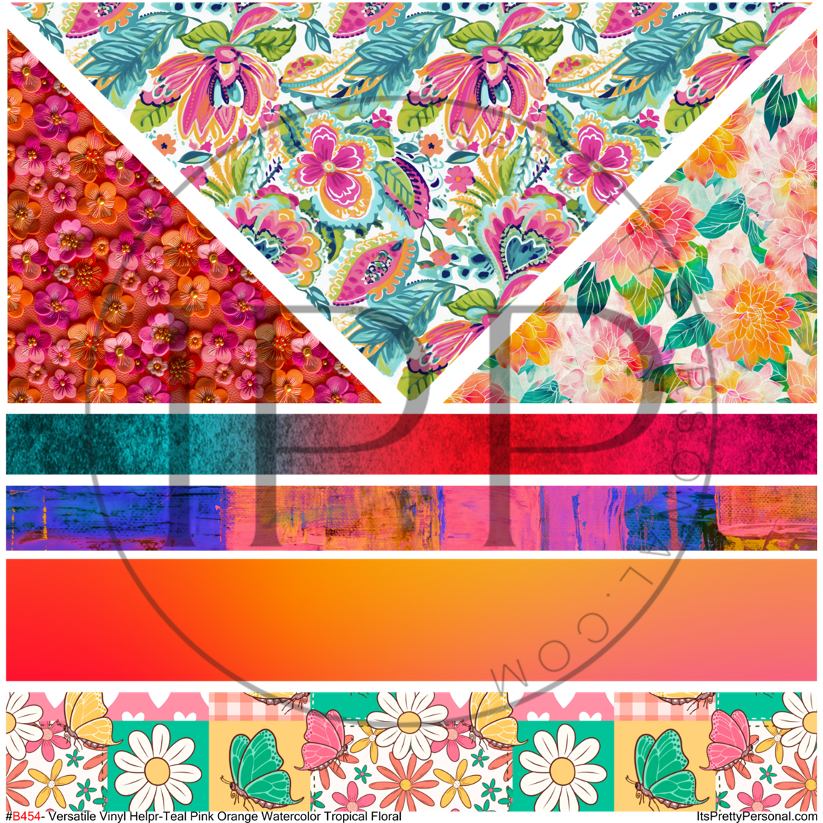 #B454-Versatile Vinyl Helper-Pink Orange Real Floral- 12x12 Pattern Vinyl