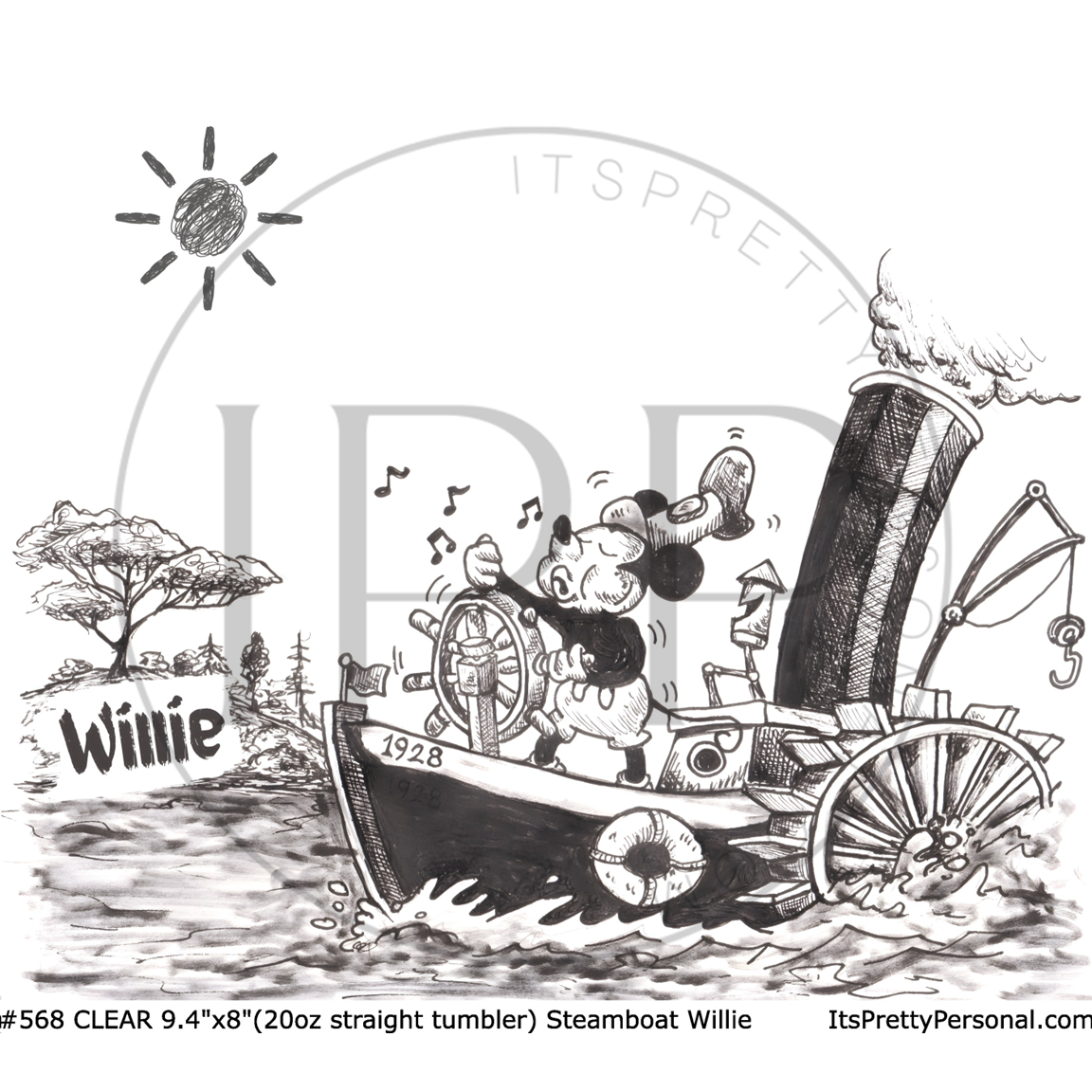 #568 CLEAR- 20oz -Steamboat Willie 9.4" x 8" Pattern Vinyl Wrap
