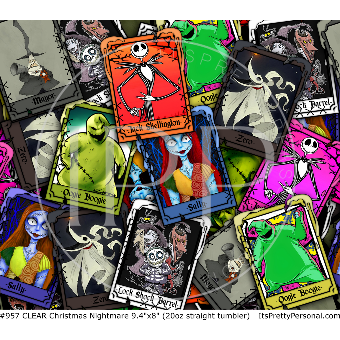 #957 CLEAR- 20oz -Christmas Nightmare Spooky 9.4" x 8" Pattern Vinyl Wrap