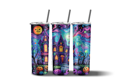 #771 HOLOGRAPHIC- 20oz -Haunted House 9.4" x 8" Pattern Vinyl Wrap