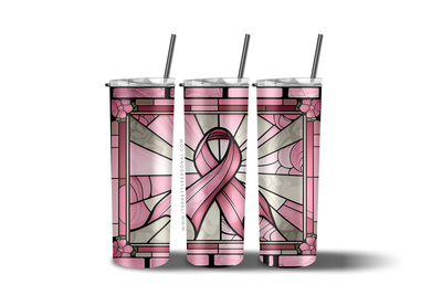 #786 CLEAR- 20oz -Breast Cancer Stained Glass 9.4" x 8" Pattern Vinyl Wrap
