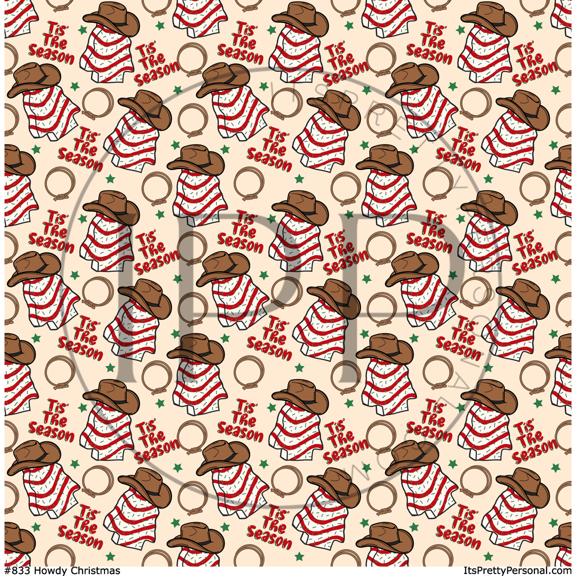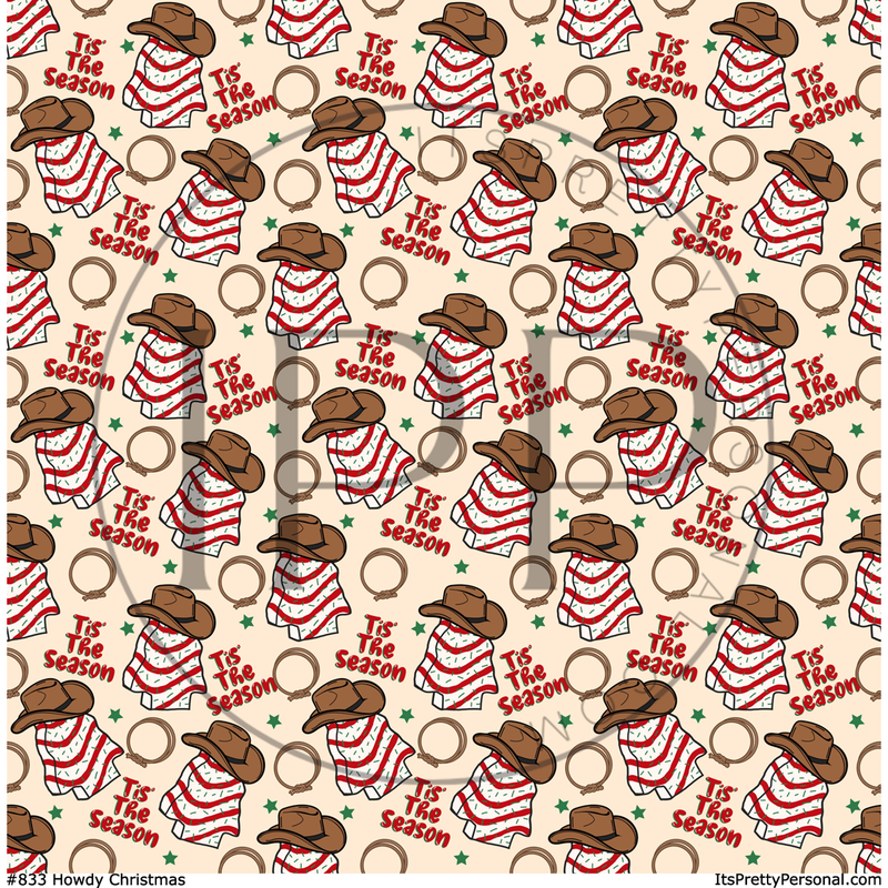 #833- Cowboy Christmas Tree Cake- 12x12 Pattern Vinyl